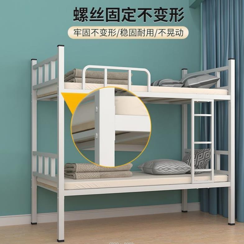 双层铁架床这种宿舍床在学校宿舍,员工宿舍等集体宿舍里面都是比较常见的。很多的工厂企业也都有摆放。床架则是使用了厚实坚固的1.2厚方管进行制造,方管坚固厚实并且不易变形,这样我们大家平常的使用也都可以更加的安全。不用怕上下铺会变形损坏,这样也保障了我们大家的日常使用安全。