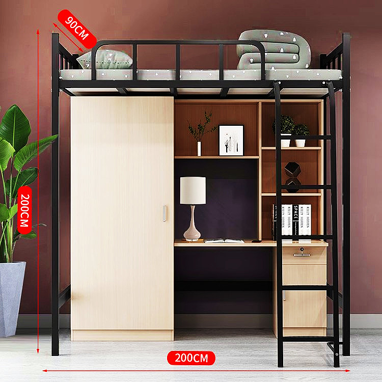 此类公寓床延续了经典的上床下桌结构。休息区域位于上层,下方自然形成独立的工作或学习桌面,有助于在集体生活环境中建立相对清晰的功能分区,维持一定的空间条理。床体主体选用厚度为1.2毫米的方管材料制造,这类框架结构在宿舍家具中应用较广。部件连接采用了卡扣式设计,其目的主要在于简化安装流程,操作过程相对便捷,为宿舍的批量布置与后续维护提供便利。