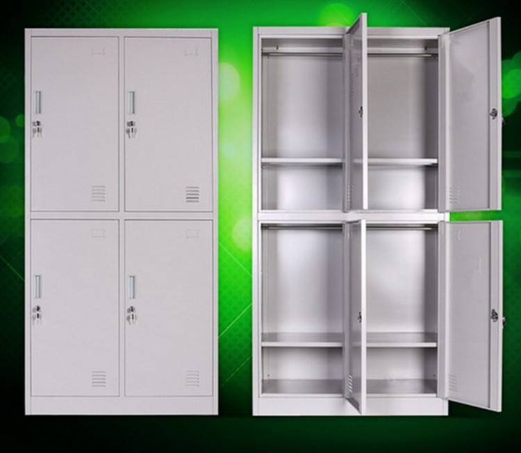 四门更衣柜这种款式的衣柜在很多学校宿舍等集体宿舍里面都有摆放使用,这些更衣柜的整个柜体都使用了静电喷塑工艺进行喷塑处理,让更衣柜的内外层都可以有漆面附着保护,不仅让更衣柜的防腐蚀性可以更强,也让更衣柜不会轻易的受潮生锈。适合在很多不同的场景里面摆放使用。